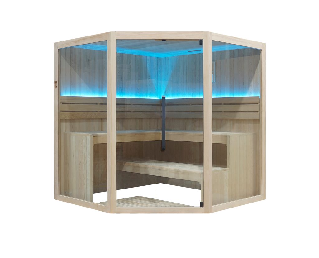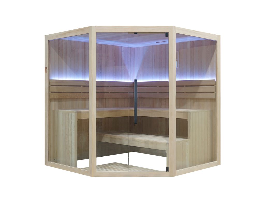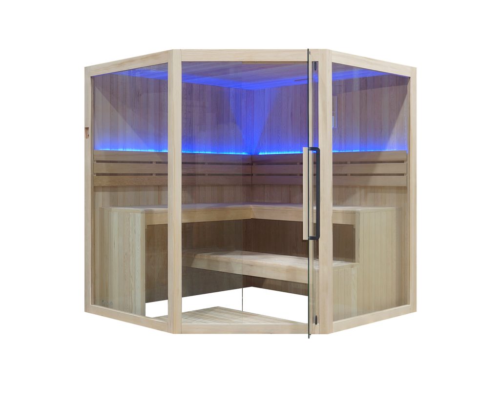 Rohové sauny patří mezi nejoblíbenější saunové kabiny, díky velmi rozsáhlým možnostem umístění. Sauna Deluxe je vyrobená z kanadské borovice Hemlock a patří mezi nejexklusivnější sauny od společnosti Espoo.