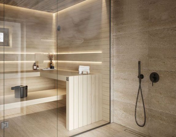 Espoo Deluxe disponuje trojicí zakulacených lavic, kdy jsou všechny lavice o šířce 50 cm, pro větší pohodlí při sezení. Díky velikosti a praktickému uspořádání lavic je sauna určena až pro 4osoby.