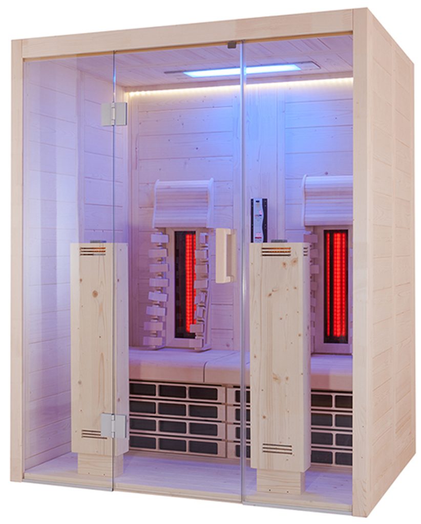 Vysoká kvalita, pohodlí a nadčasový design. To je infrasauna Domo VitaMy 164 Basic vyrobená ze smrku a lípy. Pocit otevřenosti a vzdušnosti sauně dodává celoprosklená čelní plocha a dveře s možností pravého či levého otevírání pomocí dřevěného madla. Domo VitaMy je vhodná pro 2 osoby.