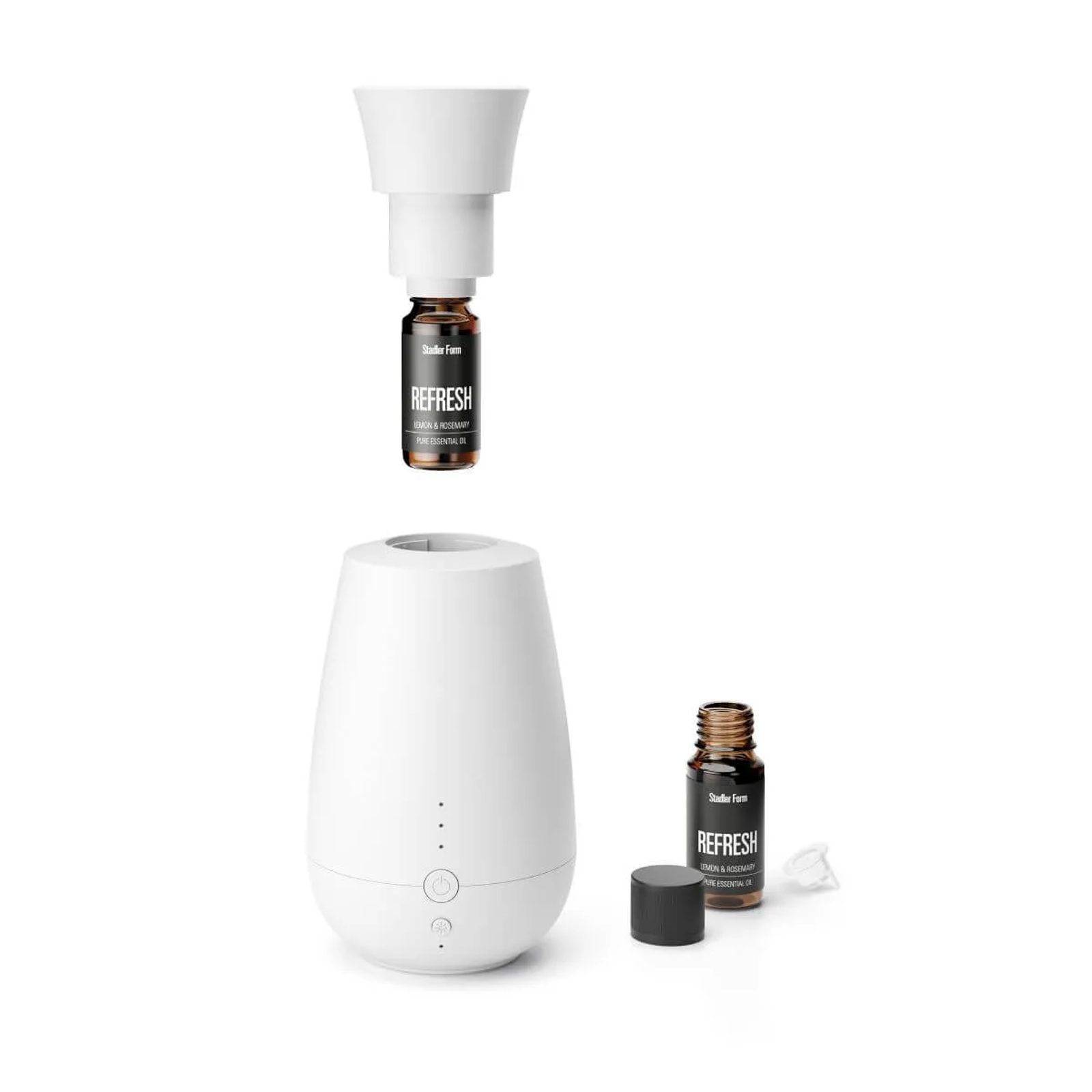 Aroma difuzér Ella rozprašuje esenciální oleje ve formě jemné mlhy mikročástic přímo z lahvičky. Zapomeňte na nepohodlné dolévání vody do difuzéru. Integrovaný světelný senzor zajistí, že aroma difuzér Ella je aktivní jen když je světlo. V tmavých místnostech nebo v noci se automaticky vypíná. Vestavěná baterie zajistí provoz difuzéru až 10 dní. Vyberte si jeden 3 stupňů intenzity a nechte se unášet intenzivní vůní esenciálních olejů kdekoli.