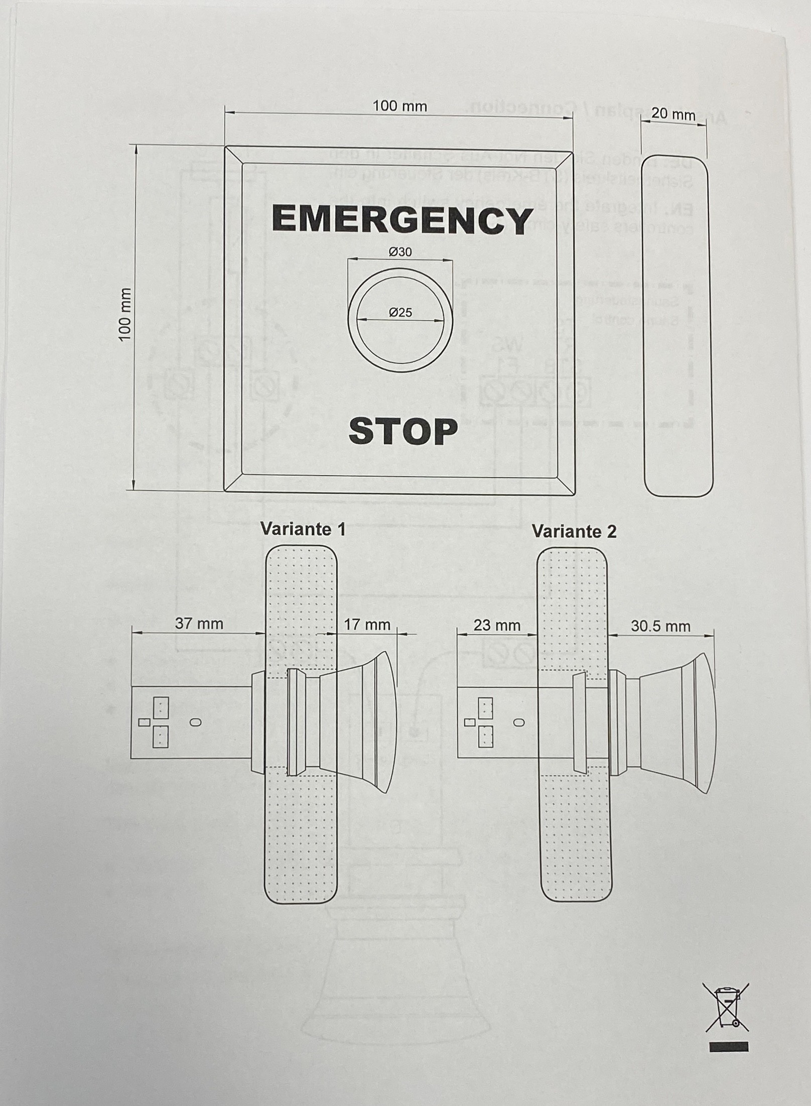 K dispozici samostatně či jako sada s krytem z bukového dřeva (kryt není součástí balení, nutno zakoupit jako položku P450) Hloubka instalace tlačítka: 85 mm Připojení: dva páry kontaktů (zalisovaných)
