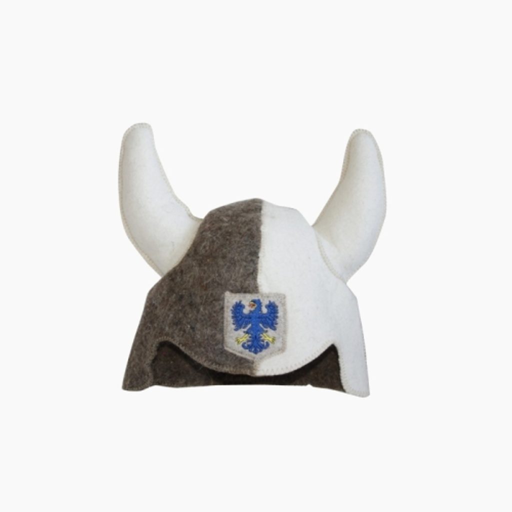 Klobouk do sauny VIKING je originální výrobek z Finska. Je vyroben ze 100 % ovčí vlny a má v přední části barevnou výšivku. Originální dárek pro saunové nadšence. Klobouk zakrývá i částečně uši.
