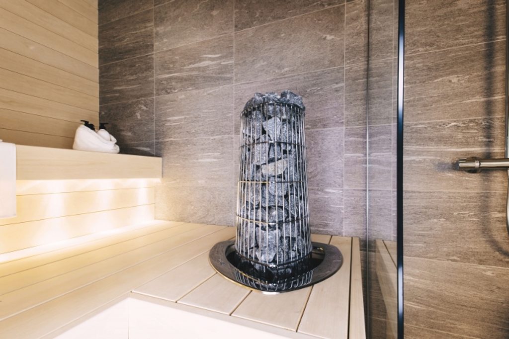 Dřevěné zábradlí k saunovým kamnům Qube 9kW a 10,5k3 slouží jako ochrana proti…