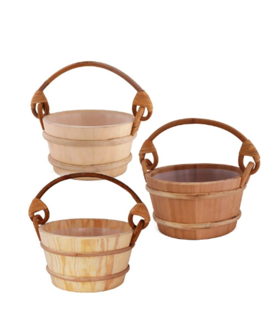 Krásné dřevěné vědro s bambusovým uchem a bambusovým vázáním. Vyjmutelná plastová vložka o objemu 4l. Originál vyroben ve Finsku. K dispozici ve třech provedení. Borovice, Osika a kanadský Cedr.