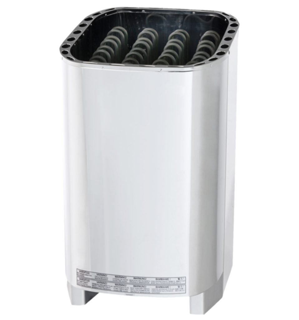 Elektrická saunová kamna Sentiotec Savonia o výkonu 9 kW, bez integrované ovládací jednotky na plášti jsou vhodná do sauny o objemu 8 -14 m3.