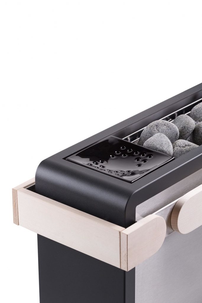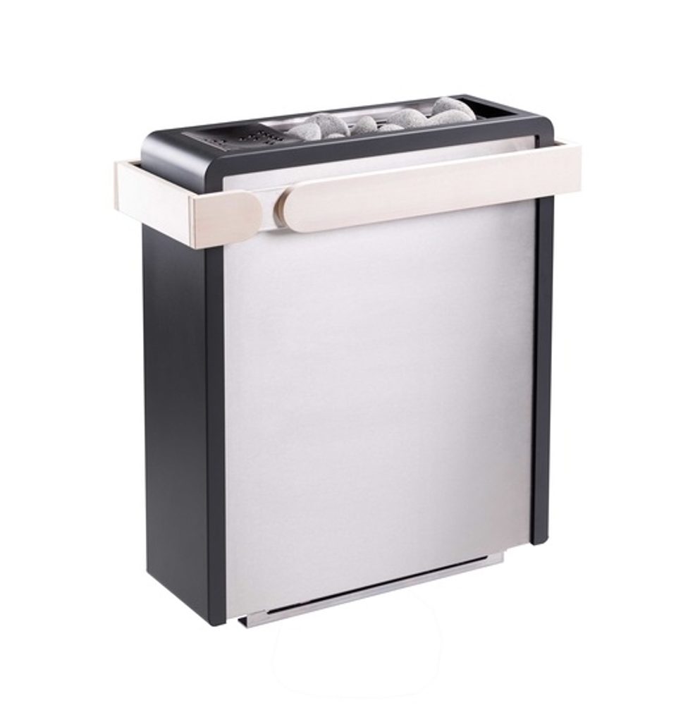 Kombinovaná saunová kamna s výparníkem Sentiotec Concept R Mini Combi 6 kW, vhodná pro sauny velikosti 5 - 8 m3. Kamna jsou bez integrované ovládací jednotky na plášti.