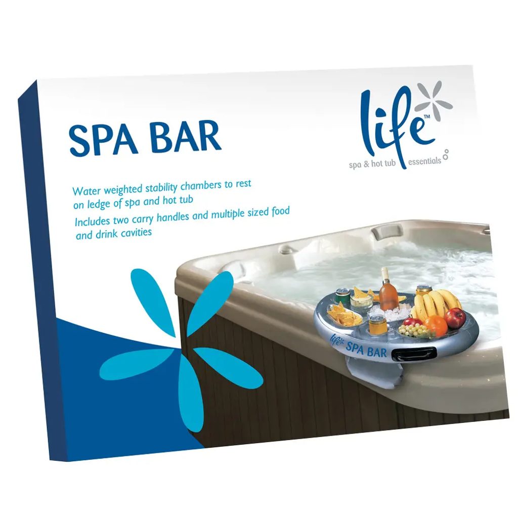 Obsahuje částečnou vodní náplň pro stabilitu a dvě madla na uchopení. Můžete se osvěžit nápojem, či ochutnat připravené dobroty přímo z vaší vířivé vany, či bazénu a dopřát si tak ničím nerušený odpočinek a relaxaci. Bar má oválný tvar a vytvarovaný prostor pro umístění 4x plechovka, nebo sklenička, větší prostor na ovoce apod., uprostřed místo pro umístění láhve v ledu apod. a dvě oddělené komory na menší drobnosti.