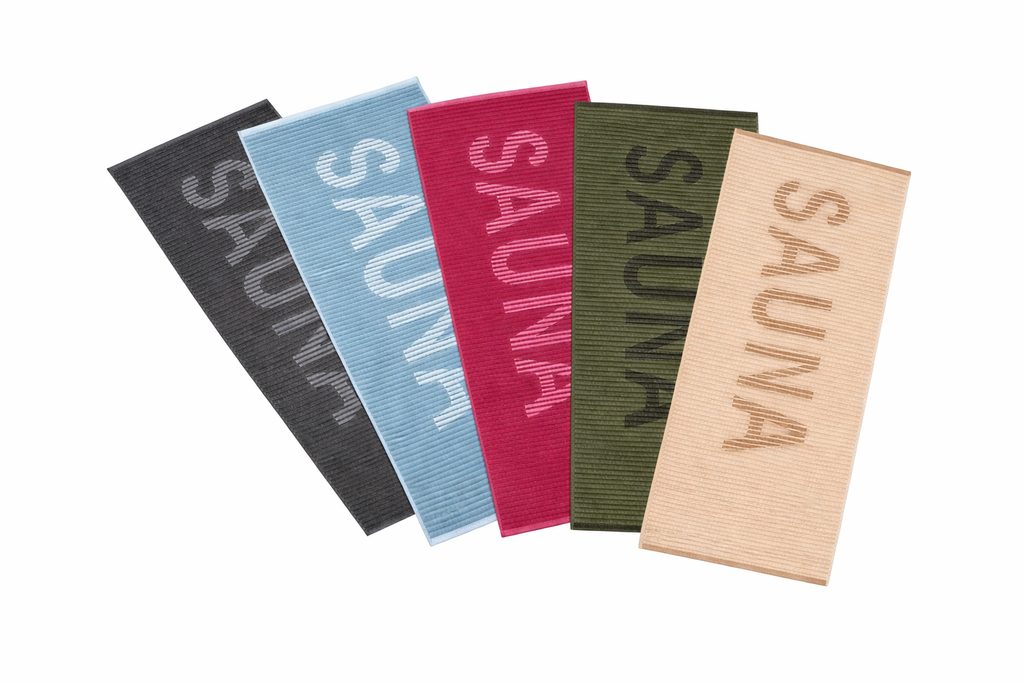 Osuška CAMDEN z kvalitního froté je k dostání v mnoha barevných provedeních, s nápisem SAUNA, bude vaším nezbytným doprovodem nejen do sauny, ale i k vodě, na pláž o dovolené.