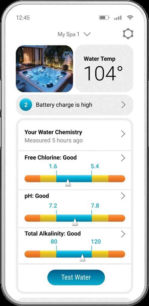 Údržba Aplikace vás upozorní, když se kazeta blíží ke konci své životnosti. Nejsou nutné žádné instalatérské úpravy: zařízení jednoduše zůstane ve vodě vířivky. Jednotka se dobíjí pomocí nabíječky, když je baterie téměř vybitá (upozornění v aplikaci).