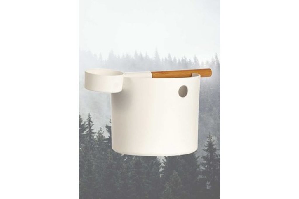 Mimořádně kvalitní a efektivní saunová sada KOLO v elegantní bílé barvě zaujme svým jednoduchým skandinávským designem i praktickým využitím. Součástí je nádoba o objemu 5 litrů (výška 20 cm, průměr 24 cm) a naběračka s bambusovou rukojetí dlouhou 41 cm a objemem 0,3 l.
